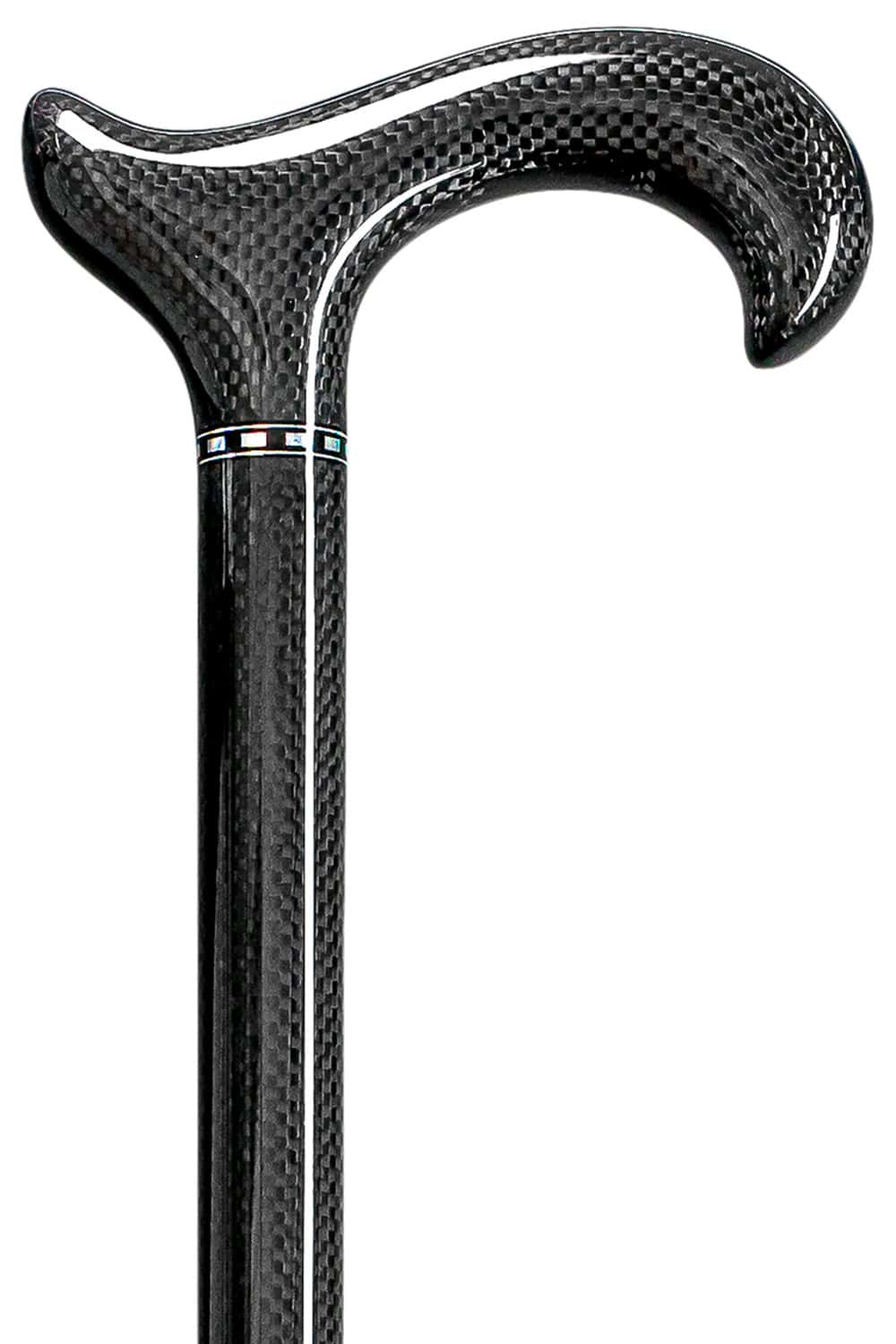 Stabiler, exklusiver Gehstock aus echtem Carbon mit L-DERBY-Griff. Ablängbarer Schuss und Griff in effektvollem Glanz-Carbon-Finish, mit Chromdekorring und Gummipuffer.