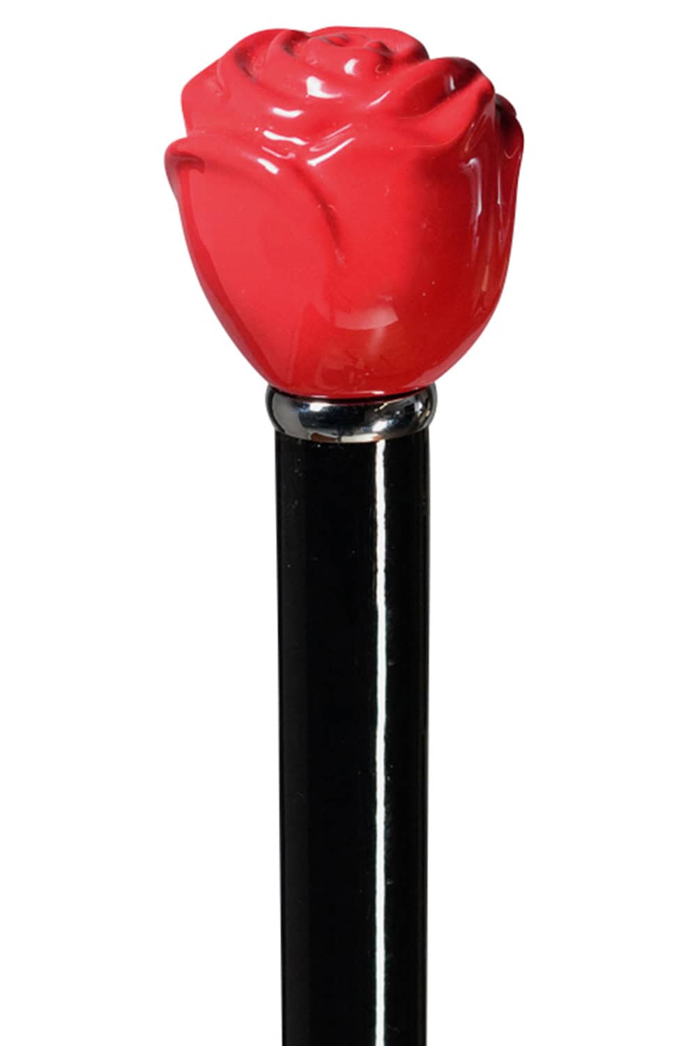 Der Knauf als Abbild einer roten Rose ist aus hochwertigem Acetat gegossen und poliert. Schwarzer, hochglanzlackierter Schuss aus heimischer Buche. Mit Chromring und angesetzter Gummizwinge.